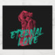 Design graphique urbain moderne et tendance de "l'amour éternel" avec photographie de sculpture historique et typographie de trait de brosse. Une femme embrasse la statue de l'homme devant l'autel de la Patrie à Rome. Des couleurs vives comme le rose / rouge et le vert sont utilisées. Design audacieux et contemporain.