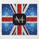 Monogramme Personnalisez avec votre initiale et votre nom personnalisés. Drapeau du Royaume-Uni parkly en parties scintillant rouge, blanc et bleu faux scintille. Nous utilisons des photos étincelantes et pas de parties scintillant réelles. parties scintillant, étincelants, étincelant, drapeau du royaume-uni, drapeau britannique, drapeau, faux, jack union,