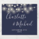 Elégant design de mariage bleu marine avec de jolies lampes à cordes, des noms de style signature et votre date de mariage spécial. Conçu par Thisisnotme©