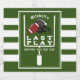 Étiquettes de bouteille de bière de fête de bachelor sur le thème du football américain vert et blanc avec des bandes, un field goal, un casque et un ballon. Personnalisez-le avec le nom du marié.