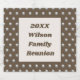 Personnalisez votre prochain dîner de réunion en famille avec ce étiquette à biberon bon marché. Le motif à points polka présente des cercles argentés contre un arrière - plan brun foncé. Un grand rectangle au centre est décoré de tons marron et beige et fournit un solide arrière - plan pour vos informations de réunion personnalisées. Customisez rapidement et facilement l'année et votre nom de famille. Ces étiquettes de bouteilles de bière offrent également une façon simple et unique de créer des petits cadeaux pour vos invités de réunion.