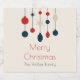Joli rétro Merry Christmas étiquette de bouteille de bière de fête avec des ornements vintages de style 70 en rouge, bleu, et ivoire au-dessus de votre nom de famille. Beaux étiquettes nostalgiques de fêtes de fin d'année.