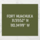 Coordonnées de la carte Latitude et longitude pour Fort Huachuca Army Installation, Sierra Vista Arizona police blanche de style Sercrayon sur arrière - plan vert de l'armée.