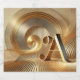 Cette oeuvre d'art abstraite montre des formes courbes d'arc-en-ciel doré s'étendant harmonieusement à partir d'un point central. En bas, il y a un "A" d'or, serré et stylisé, qui arrondit la composition. La couleur de fond douce et neutre renforce la lueur luxueuse des éléments dorés, tandis que l'éclairage doux confère à l'image une élégance radiante. La conception moderne symbolise la sophistication et la beauté sans fin.