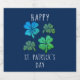 Verte Lucky Shamrock Clover Joyeux St. Patrick's day Bière bouteille Étiquette. Trois shamrocks peints en vert et bleu sur un arrière - plan bleu marine. Porte-vêtements avec quatre feuilles pour la chance.
