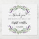 Un élégant arrière - plan blanc décoré de fleurs de lavande et de verdure d'eucalyptus. Personnalisez et ajoutez vos noms et votre date de mariage. Avec le texte : Merci de partager notre journée spéciale.