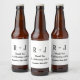 Monogramme moderne Personnalisé Mariage noir & blanc Merci Étiquettes bouteille de bière