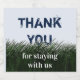 Dites merci à vos invités de location avec cette étiquette de bouteille de bière d'appréciation peu coûteuse. Cette étiquette simple à utiliser présente de l'herbe verte foncée et un "ciel" bleu clair. L'herbe a été peinte et texturée pour permettre aux mots "Merci" de pointer derrière les lames. "Merci de votre séjour avec nous" peut être facilement personnalisé pour s'adapter à votre location ou maison d'été.