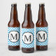 Étiquette Pour Bouteilles De Bière Monogramme simple avec Pois bleus