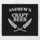 Nom personnalisé bière artisanale blé crête couronne logo Étiquette de bouteille de bière. Étiquettes personnalisées pour le brasseur amateur. Idée cool pour papa, mari, petit ami, père, oncle, grand-père, ami, collègue, patron, buveur d'alcool, fabricant de bière artisanale, etc. Modèle de design de typographie élégante.