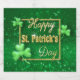 Illustration glamour de la Saint-Patrick à la parties scintillant dorée élégante avec typographie en or 3d à l'intérieur d'une bordure en parties scintillant dorée avec un élégant trèfle shamrock sur un précieux arrière - plan vert.