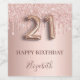 Elégant, classique, glamour et girly pour une fête de 21ème anniversaire. or rose et rose vif, arrière - plan dégradé. Décoré d'or rose, de gouttes de parties scintillant rose, de la peinture goutte à goutte. Personnalisez et ajoutez un nom. Avec le texte : Joyeux anniversaire. Le texte est écrit avec un script de style de style à la main de couleur rose foncé moderne. Le numéro 21 est écrit avec une police de style ballon.