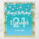 Un étiquette élégant et glamour de 21e anniversaire ou bouteille de vin mousseux. Turquoise parties scintillant en faux-losange de couleur bleu vert avec un cadre doré. Modèles pour un nom, âge 20 et une date. Date de naissance ou date de la fête/anniversaire. Avec le texte : Joyeux anniversaire ! Lettres blanches et turquoises. Le nom est écrit avec un script de style écrit à la main.