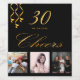 Un étiquette de bouteille pour une soirée glamour de 30ème anniversaire. Personnalisez et ajoutez 3 de vos propres photos, 30 ans et une date. Date de naissance ou date de la fête. Lettres de couleur dorée. Le mot : Bravo, en faux or écrit avec un script de style à la main tendance. Elégante, classique, couleur arrière - plan noire chic, décorée avec des serpentins de soirée en faux or.
