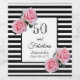 Un étiquette pour une fête du 50e anniversaire. Classic rayures noir et blanc mince comme arrière - plan. Avec des roses roses roses roses girly et féminine comme décoration. Un cadre sur le devant Avec le texte : 50 et Fabuleux et modèle pour le nom et la date.