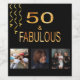 Un étiquette de bouteille pour une amusante fête du 50ème anniversaire, la célébrant avec un collage de 3 photos de sa vie, comme des amis, des enfants, la famille, des intérêts, des buts de rêve, des animaux de compagnie. Personnalisez et ajoutez 3 de vos propres photos. Le texte : 50 & Fabuleux écrit avec des lettres d'or. Elégante, classique, couleur arrière - plan noire chic, décorée avec des serpentins de soirée en faux or.