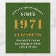 Un design classique personnalisé pour cette célébration d'anniversaire pour une femme spéciale née en 1971. Ajoutez le nom à ce style rétro vintage, blanc et or design pour un cadeau d'anniversaire personnalisé. Modifiez facilement le nom et l'année avec le modèle fourni. Un merveilleux cadeau d'anniversaire personnalisé. Plus de cadeaux et de fournitures de fête pour cette fête disponibles dans le magasin.