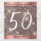 Étiquettes de vin moderne et tendance de 50e anniversaire avec numéro 50 sur un arrière - plan rose or et noir brillant. Personnalisez avec un nom et une date.