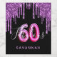 Pour une fête moderne, branchée et glamour de 60ème anniversaire. Un élégant arrière - plan noir classique décoré avec des gouttes de parties scintillant couleur violet foncé, la peinture goutte à goutte. Avec le texte : 60 et Fabulous. Personnalisez et ajoutez un nom. Texte de couleur violette. Le mot Fabulous est écrit avec un script de style moderne écrit à la main. Le numéro 60 est écrit avec une police de style ballon.