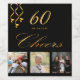 Un étiquette de bouteille pour une soirée glamour de 60ème anniversaire. Personnalisez et ajoutez 3 de vos propres photos, 60 ans et une date. Date de naissance ou date de la fête. Lettres de couleur dorée. Le mot : Bravo, en faux or écrit avec un script de style à la main tendance. Elégante, classique, couleur arrière - plan noire chic, décorée avec des serpentins de soirée en faux or.