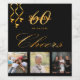 Un étiquette de bouteille pour une soirée glamour de 60ème anniversaire. Personnalisez et ajoutez 3 de vos propres photos, un nom, 60 ans et une date. Date de naissance ou date de la fête. Lettres de couleur dorée. Le mot : Bravo, en faux or écrit avec un script de style à la main tendance. Elégante, classique, couleur arrière - plan noire chic, décorée avec des serpentins de soirée en faux or.