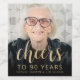 Ce étiquette de vin de 90ème anniversaire personnalisé présente l'invité d'honneur photo, nom, et anniversaire, ainsi que le mot "Cheers" dans élégant script de calligraphie couleur or. Un écran sombre permet de faire apparaître le texte. Un excellent moyen de célébrer quelqu'un qui a quatre-vingt-dix ans !