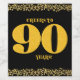 Fête du 90e anniversaire avec un rétro moderne branché 90 dans un motif de parties scintillant en or avec une bordure en confetti en or moucheté sur un arrière - plan noir.