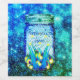Un pot de mason de lucioles ou d'éclairs contre un arrière - plan étoilé. Un design rustique et élégant. Dans les couleurs bleu, vert et jaune.
