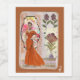 Dégageant chaleur et confiance, ce collage met en valeur une femme dans une robe orange spectaculaire et longue jusqu'au sol, placée dans un cadre cintré stylisé. La composition est équilibrée par des motifs floraux inspirés de l'art populaire et une base en papier déchiré présentant des coupures de journaux français classiques. Avec son mélange d'illustration de mode audacieuse et d'éphémères rustiques et texturés, cette pièce capture un sens unique du style "vintage-réunis-avant-garde".