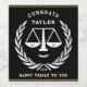 Étiquettes de la fête de remise des diplômes de l'école de droit créative et idée de cadeau d'avocat avec des citations amusantes et des échelles de justice dessin animé. Pour personnaliser le texte de modification pour ajouter le nom et l'année ou toute autre personnaliser.