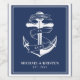 Étiquettes de bouteille de vin bleu et blanc mariage nautique. Idéal pour un mariage de la Marine (militaire) ou d'une maison de lac. Le design comporte une ancre enveloppée dans une bannière avec le texte "Ancré dans l'amour". Personnalisez-le avec vos détails mariages.