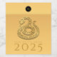 Design élégant avec papier doré coupé d'un serpent (avec une petite ombre portée). Conception sur étiquettes de bouteilles avec "Année du serpent" et monogramme sur rond noir. Vous pouvez facilement modifier le texte (police, couleur, taille et position) en cliquant sur le bouton personnaliser. Carte de voeux, carte postale, produits artisanaux et plus bientôt. Parfait pour un Nouvel An chinois personnalisé du serpent 2025.
