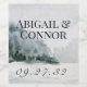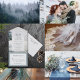 Eléments : aquarelle peinte du lac de montagne rustique en hiver; élégantes polices serif et sans serif. Couleurs : bleu, vert, gris, blanc, blanc cassé. Thèmes : montagnes, lacs, mariage extérieur, mariage d'hiver, élégant, rustique, impressionniste, aquarelle, montagnes enneigées. Collection : Collection de Mariages d'aquarelle de Rustic Mountain Lake. Type de produit : Étiquette de vin