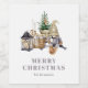 Ces étiquettes de vin de vacances rustiques et douillets présentent une aquarelle illustrant un mignon gnome féminin assis à côté d'un sapin miniature, d'un panier de billes de bouleau et de quelques bougies. Les mots "MERRY CHRISTMAS" apparaissent dans des lettres serif grises qui se coordonnent avec l'art. Ajoutez le nom de votre famille en italique gris charbon.