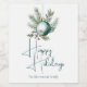 Cette magnifique typographie verte étiquette de Noël fête vin dispose d'une belle aquarelle d'un ornement de vacances et de feuilles de pin au-dessus de l'élégant script écrit à la main lire Happy Holidays. Ces étiquettes de cadeaux de vacances modernes sont un choix tendance et chic pour une famille classe.