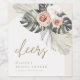 Célébrez les futurs mariés avec ces étiquettes de vin de douche à arche fleurie bohème modernes et élégants, avec une arche recouverte d'un bouquet floral en feuilles de palmiers séchés, des feuilles monstères et des pivoines roses rousses.