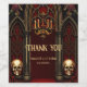 Arche gothique aux crânes. Contre un mystérieux arrière - plan rouge, une grande arcade gothique s'élève majestueusement, décorée de détails ornés. Les deux grands piliers, ornés de sculptures délicates, donnent à l'image une élégance poignante. Au milieu de l'arcade brille un impressionnant vitrail dont le motif central est une araignée symbole de patience et de créativité. Flanquée de deux crânes dorés, rappelant à la fois l'éphémère et l'amour éternel, l'arcade captive le spectateur et promet une célébration pleine de mystère et de fascination.