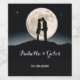 Illuminez votre âme avec cette superbe sélection de designs de mariage céleste de nuit étoilée. Fait partie de la collection "Over the Moon". La silhouette d'un couple romantique se détache sur la lueur d'une pleine lune au sommet d'une montagne avec le ciel nocturne scintillant d'étoiles. Parfait pour tout couple d'amoureux étoilés.