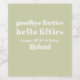 Un étiquette de vin sophistiqué pour une fête de la Milestone Cinquante et impeccable! Cette étiquette moderne et élégante est la façon idéale de servir ou de faire un cadeau à l'occasion d'un 50e anniversaire. Conçu avec un arrière - plan vert pastel doux et une police serif élégante avec Goodbye Forties, Hello Fifties, ce étiquette rayonne sur le raffinement. Avec un texte personnalisable, ce design convient à toute ambiance de soirée élégante, amusante ou détendue. Commencez le compte à rebours - customisez et commandez le vôtre aujourd'hui! Nous vous sommes reconnaissants de votre soutien ! Vous aimez ce design ? Frappe comme !