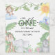 Étiquettes de vin pour Baby Shower avec des illustrations aquarelles d'un singe, d'un perroquet, d'un rhinocéros et d'une girafe assis dans un fond de jungle verte. Les styles de police, la taille et la couleur peuvent être modifiés en cliquant sur le lien 'personnaliser davantage' après la personnalisation.