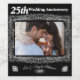 Faites une mémoire durable avec cette photo modèle, vingt-cinquième anniversaire mariage avec cadre vintage et orné, et motifs élégants aux coins inférieurs. Modèles pour noms et année mariage sous photo. Sur une base noire.
