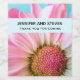 Mariage merci bouteille étiquettes avec une fleur rose et blanche vibrante. La photo de près de cette fleur enchanteresse attire vraiment votre attention. Une bande bleue pastel avec votre texte personnalisé à l'intérieur.