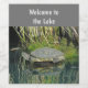 Bienvenue dans votre maison de lac avec ce étiquette de bouteille à vin à thème nature avec une tortue de soleil. La belle tortue est équilibrée sur un rocher le long de l'eau du lac avec de hautes roseaux de tonus de terre et la mousse dans l'arrière - plan. Les roseaux et la tortue se reflètent dans l'eau. "Bienvenue au lac" apparaît contre une bannière gris foncé en haut et peut être facilement customisé si vous le désirez. Ce étiquette aide à créer un cadeau de bienvenue parfait pour votre maison ou vos invités de location de maison.