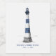 Designer Maura A. © pour Sly Coconut Creative Designs. Un design simple et élégant, avec un phare dessiné à la main dans un style bleu et blanc. Les polices sont personnalisables.