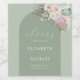 Ce design boho moderne se présente sous la forme d'un arc vert sauge décoré d'un bouquet tropical rose et blanc luxuriant, agrémenté de feuilles de palmiers séchés et de sprigs d'eucalyptus sur un arrière - plan vert sauge pâle. Le mot "cheers" apparaît dans un élégant script blanc. Personnalisez le étiquette avec un bref toast de votre choix, ainsi que les noms de la mariée et du marié et le lieu et la date du mariage.