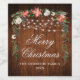 Elégante aquarelle Poinsettia Floral Joyeux Étiquette de bouteille de vin de Noël comprend de belles poinsettias rouge aquarelle, la végétation botanique, feuillage d'hiver, baies sèches, roses blanches, coton, cônes de pin et baies bleues. Bois rustique et lumières à cordes.