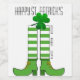 Chaussettes rayées vertes et blanches, chaussures et trèfle.