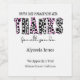Cette adorable étiquette à taches roses et noires qui met en vedette les mots "merci à tous" est le complément parfait à toutes vos gâteries et faveurs de la semaine de gestion coques. Personnalisez cet autocollant avec votre message personnalisé et vos informations d'agence.