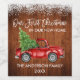 Script de brosse moderne Notre premier Noël dans notre nouvelle maison Vin de vacances Étiquette comprend Aquarelle Vintage Camion rouge avec arbre de Noël - Rustique Pays Bois et Neige Top