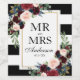 Élégant aquarelle burgundy marsala bleu floral noir et blanc rayé cadre doré vin et vin mousseux étiquettes de bouteille